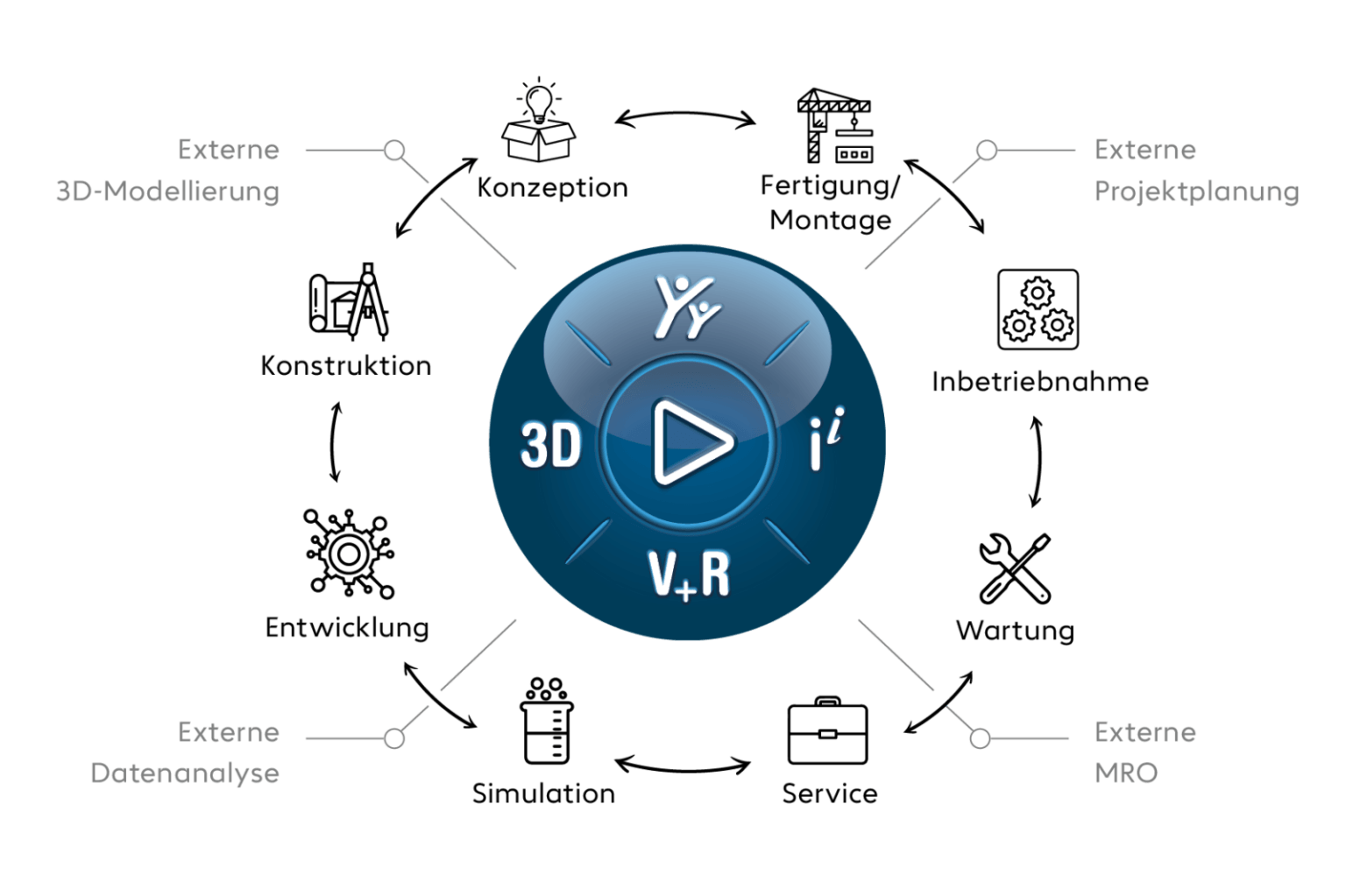 Kontinuierliche Aktualisierungen und Verbesserungen während des gesamten Lebenszyklus des Produkts: Vom ersten Entwurf über die Produktion bis hin zur Wartung kann das Modell kontinuierlich an neue Anforderungen oder Technologien angepasst werden. Produkte werden nachhaltiger und besser, z. B. durch Testen verschiedener Materialien und Prozesse mit minimalen Umweltauswirkungen, und das bei kürzeren Entwicklungszeiten und reduzierten Kosten. Alle Daten aus dem Modellierungs- und Simulationsprozess werden gespeichert und können für zukünftige Projekte wiederverwendet werden, was die Effizienz und den Wissenserhalt im gesamten Unternehmen verbessert.
