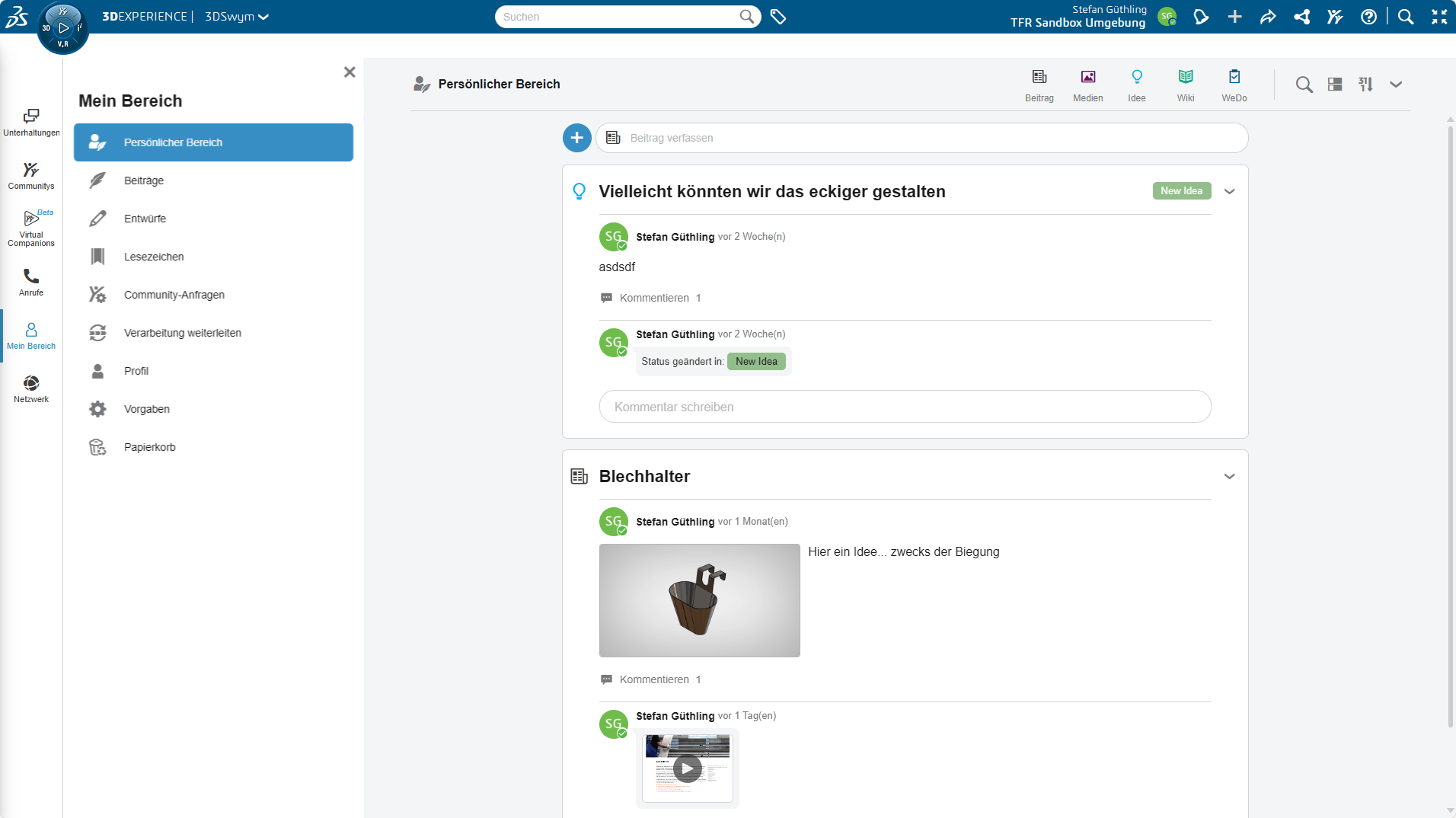 Abstimmungen und Freigaben kosten im Alltag oft unnötig Zeit. Vieles entsteht durch Warten auf Rückmeldungen oder zusätzliche Meetings. Mit SOLDIWORKS Design und der 3DEXPERIENCE wird dieser Prozess deutlich schlanker. Mit der Kommunikationsplattform 3DSwym halten Sie Ideen fest, besprechen Fragen und stimmen Projektdetails direkt dort ab, wo die Daten liegen.