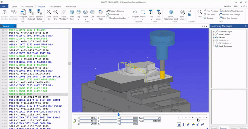 Der CIMCO Editor stellt Ihnen einen umfangreichen Satz von wichtigen Editier-Werkzeugen zur Verfügung, um allen Anforderungen an einen modernen Editor für CNC-Programme gerecht zu werden. CIMCO Editor kennt keine Begrenzung der Programmgrösse und schliesst spezifische Optionen für die CNC-Codierung ein, wie die NC-Satz-Nummerierung/-Neunummerierung, das Zeichen-Handling und die Ermittlung der Achsengrenzwerte in X, Y, Z. Mit ihm können Sie auch mathematische Funktionen ausführen, einschliesslich geometrischer Grundfunktionen wie Rotieren, Spiegeln, Werkzeugradiuskorrekturen und translatorische Verschiebungen.