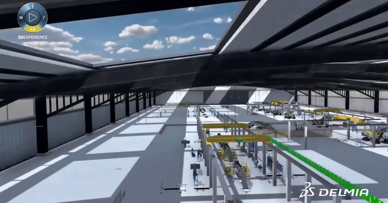 Denken Sie Fabrikplanung mit DELMIA virtuell, simulieren, optimieren und validieren Sie hunderte von Einzelaspekten und Details lange bevor Sie die neue, perfekt organisierte Produktionshalle betreten.