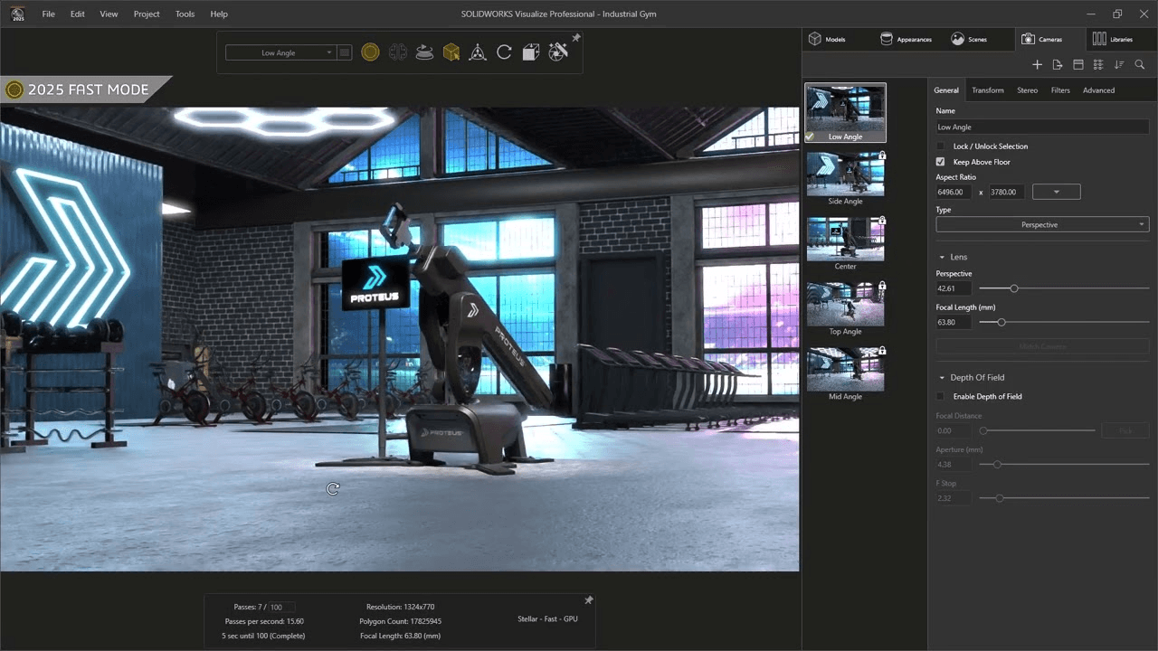 Schnelles Rendering dank KI: Der Stellar Global Illumination Renderer, kombiniert mit Deep-Learning-AI-Denoising, liefert physikalisch korrekte Ergebnisse in Höchstgeschwindigkeit.