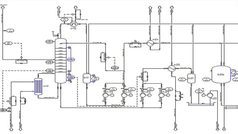 Ein Prozessfliessschema bietet eine detailliertere Darstellung und zeigt die Hauptausrüstungsteile, wichtige Steuerungsschleifen und die Hauptströme von Materialien und Energie. Es wird zur Prozessanalyse, -planung und -optimierung verwendet.